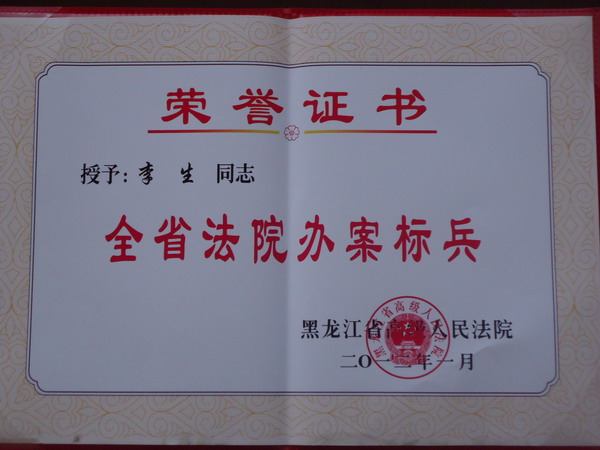 1992年进入林口县法院工作的李生同志,围绕司法公正、一心为民的工作主题,刻苦钻研业务,积极开展各项审判工作,承担了大量复杂、疑难案件的审理工作,取得了显著成绩,2010年度收案75件,结案75件,其中调解撤诉63件,调撤率达84%,所判决的案件,没有发回重审的案件。2011年以来,收案233件,按期结案229件,调解撤诉为179件,调撤率达76.8%,所判决的案件没有一件上访。