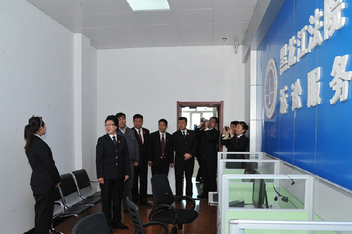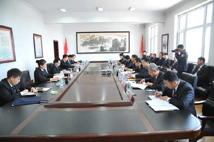 2016年4月8日上午9时,牡丹江市中级人民法院张敏院长一行6人到林口法院就司法改革、审判质效、队伍建设进行调研。