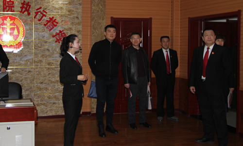 王疏峰主任一行人先后视察了林口法院执行警务局远程视频指挥调试平台、12368诉讼服务中心、执行指挥中心工作区域,并仔细观看了林口法院执行警务局机构设置职责示意图、执行权分权集约实施办案流程图、文明办公守则等基础设施和材料,对执行警务局的软硬件建设和充分运用高科技手段协助执行等工作表示肯定。