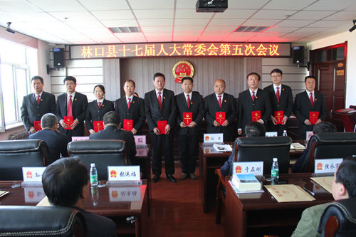 5月26日上午,林口县法院10名新任命的审判委员会委员接受任命书并宣誓。