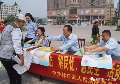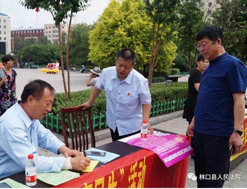 6月20日上午,林口县法院派出业务骨干党员到林口县兴林广场参与“党员服务大集”活动,悬挂横幅、张贴宣传标语,为过往群众发放法律宣传手册、宣讲法律知识、解答法律咨询、解读法院立审执工作流程。面对群众的疑难问题,尽量在现场给予他们满意的答案,实在无法解决的建立问题清单,在活动结束后积极寻求解决办法,并上报上级党组织。林口县法院还积极与其他单位进行互动,交流此次活动的心得体会和经验做法,力争取得实效。