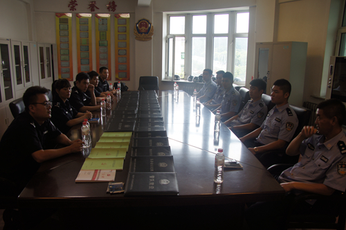 林口县法院一行人在穆陵市法院常务副院长徐远见的带领下,参观了法警值班室、备勤室、安保监控室、法警办公室、刑事审判庭、羁押室等与法警工作密切相关的基础设施,认真倾听了陈大队长的讲解,了解了穆陵警队的队伍建设、日常勤务、警务保障的一些情况,对谈及的方方面面细查细看,希望从中能汲取到更多的经验。同时,两个警队的相关人员还进行了座谈,就警队的规范化管理、规范化建设和安全事故预防、信息化建设等相关问题开展交流讨论。