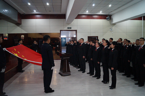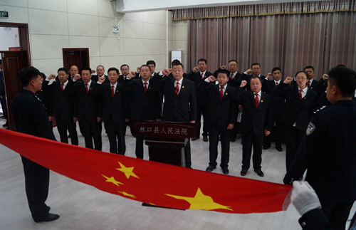 2月4日上午,在全国第四个宪法日到来之际,为弘扬宪法精神,维护司法公正,林口县人民法院党组书记、院长孙凯参加并带领全体员额法官在国旗下进行庄严宣誓。