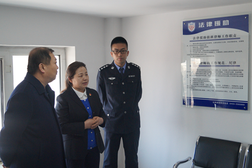 仪式结束后,参加揭牌仪式一行人员参观了工作站办公室,王晓岩对我院和司法局共同所作的工作给予了充分肯定,并强调法律援助中心要切切实实的为百姓做事、排忧解难,一要做好热情接待、案件受理工作,让援助对象感受到温暖和关怀。二要做好法律援助人员的指派工作,充分发挥法律服务工作者的义务,提高业务素质和能力水平,精益求精。三要加强制度管理,强化自身素质,把法律援助工作落实到位。