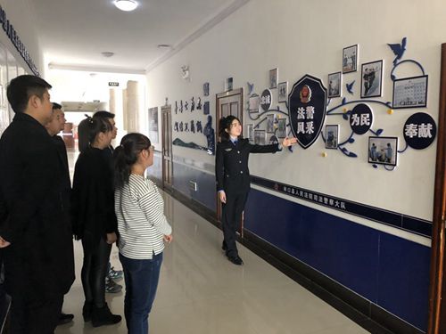 六名实习大学生在讲解员的带领下分别参观诉讼服务中心、110指挥中心、文化长廊、第一审判庭、院史馆等地,向大学生介绍了法院的历史沿革、机构设置及法院文化,他们也听得津津有味。在第一审判庭,讲解员向他们介绍了法院审判流程,了解了各个环节,感受了法律的严肃与公正。在文化长廊,大学生们被司法警察飒爽的英姿所深深吸引。学生们纷纷表示:作为刚刚步入社会的我们,通过此次活动真正了解了法律的公正与严明,在日常生活工作中也一定要做一个学法、知法、守法、用法的好公民。