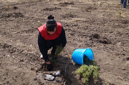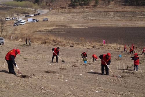 在上山阳村义务植树区,林口县人民法院干警代表一起挥锹培土,一丝不苟地将一株株树苗植入土里,配合默契,干得热火朝天,忙得不亦乐乎。经过干警们的共同努力,新栽种的近300棵松树苗和沙棘苗整齐有序地排列,为大地再添一份生机与活力。