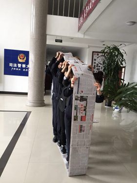 拓展训练开始后,大家被现场随机分成两队,大家充分发挥集体智慧,创作出各具特色的队名、口号、队歌,选出了各自的队长。院领导们也积极参与,与干警打成一片,大家都暂时忘记年龄和身份,全身心投入拓展训练其中。在大家相互配合、相互帮助的过程中,完成了“无敌风火轮”、“踩报纸”、“驿站传书”等一系列的拓展项目。