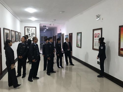 庭审过后,在讲解员的带领下,司法局同志参观了审判庭、司法警察大队文化走廊、院史馆等地。