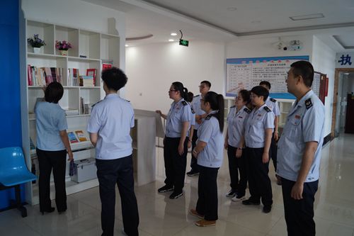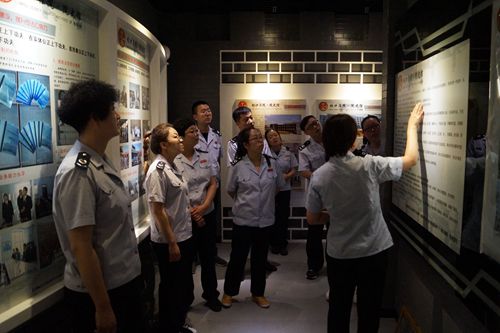 地税局工作人员一行在讲解员的带领下参观了诉讼服务中心、执行指挥中心、安检大厅、第一审判庭、文化走廊、院史馆等地。在诉讼服务中心,讲解员详细介绍了立案大厅的智能化建设和案件的诉讼服务流程,一位地税局工作人员随后感叹道:“你们竟然也有叫号机。”在院史馆内,图文解说和陈列的照片为来访者呈现了法院的历史沿革以及工作情况。荣誉墙上摆放着获得的各项重大荣誉奖状和奖章,向大家展示出了我院的光辉历程。