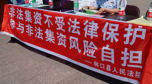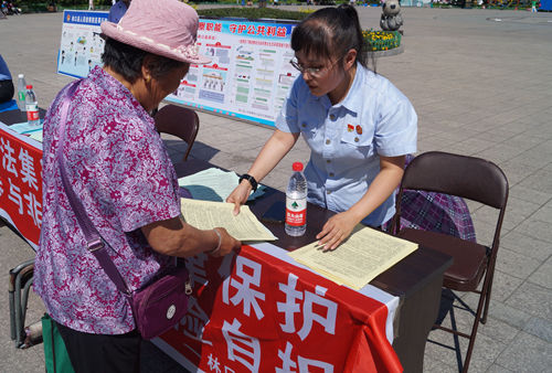 上午9时许,在院党组书记、院长孙凯的带领下,林口县法院干警来到兴林广场,悬挂横幅、张贴宣传标语,为过往群众发放法律宣传手册、宣讲法律知识、解答法律咨询、解读法院立、审、执的工作流程。刑庭庭长张伟兵针对非法集资问题,特别是针对中老年群体等重点人群进行了详细的讲解,并提醒他们要树立正确的理财观念,自觉抵制各种形式的非法集资活动,避免遭受损失。