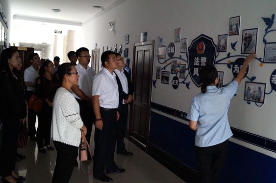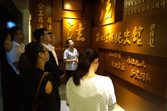 粮食局职工一行在讲解员带领下分别参观了主楼大厅文化建设、警队文化建设、安检大厅、体能训练室及院史馆等地。在参观警队时,陈列在墙上的照片展现出了司法警察别样的风采,让来访者不经为之赞叹。在院史馆,讲解员详细的介绍林口县法院的发展史,从基础设施建设到审判第一案、从历任院长到不断增加的干警人数,无不展示出了林口县人民法院精神面貌的不断变化。
