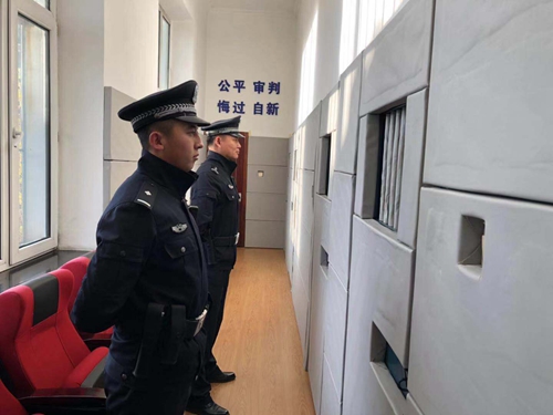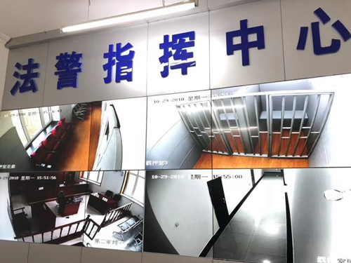 林口县人民法院司法警察大队为了加强警务保障工作,在2018年初对押解室、押解通道、监控设备等硬件设施进行全方位的更新。在押解室全屋安装防护软包,以起到防撞、防逃脱的效果;押解室设立独立卫生间、屋内摆放急救箱, 在押解通道、楼梯间加固防护栏、防护门,以提高押解看管安全系数。同时,在安检大厅、法警指挥中心、羁押室安装监控显示器,可以在同一视频监控中看到各个羁押室情况,如遇突发事件发生,法警可以第一时间赶到现场。