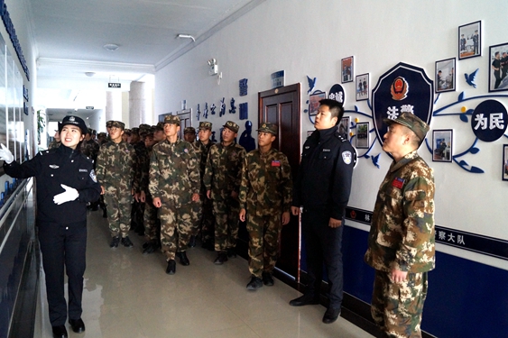 战士们一行在讲解员的带领下分别参观了诉讼服务中心、执行指挥中心、第一审判庭、安检大厅、警队文化走廊、院史馆等地。在诉讼服务中心,讲解员向战士们详细讲解了当事人如何立案、以及法官们如何受理案件的全流程。在参观完第一审判庭后,战士们被审判庭前伫立的石像所吸引,“这是石兽叫什么名啊?”一位战士问道,“它叫独角兽獬豸,它是中国传统法律的象征,一直被视为法律与公正的偶像”。讲解员耐心的解释道。