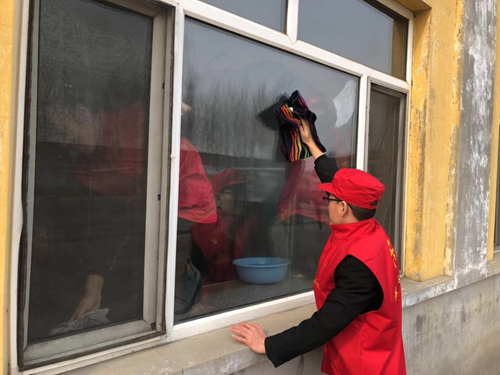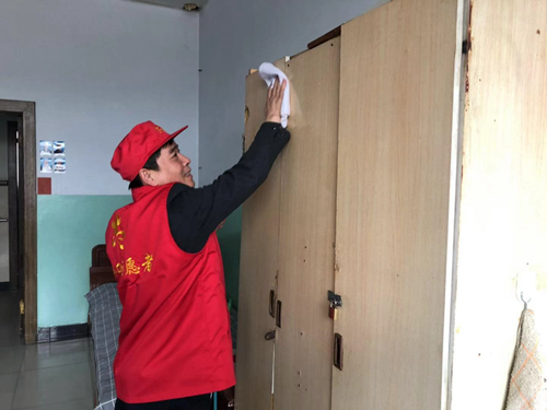 在敬老院里,志愿者们分成小组清洁敬老院卫生,大家发扬不怕苦、不怕累的精神,分工明确,有的擦窗户、有的擦柜子,忙得热火朝天。志愿者还不忘叮嘱老人要照顾好自己的身体,安享晚年生活。