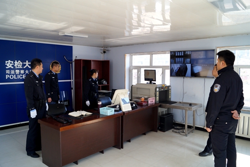 市中院督察组重点针对机关安全设施、执勤法警规范着装及装备、队伍建设等方面展开督察,检查了安检通道、监控指挥中心、审判庭、羁押室、装备室等地,仔细查阅了警务实务、司法安全落实情况等相关工作台账,听取了林口法院关于加强司法警务安全保障工作的情况汇报。