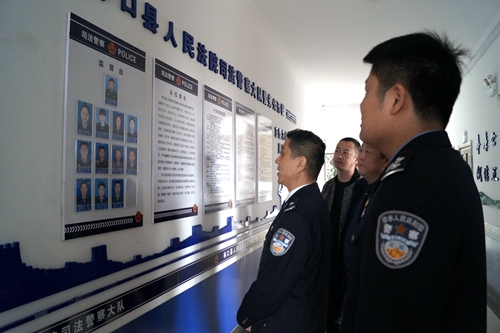 验收组一行先后参观了安检大厅、第一审判庭、押解室、和警队文化长廊、单警装备库、公用装备室、警队指挥中心、党建活动室等地,分别从警务保障、队伍管理、教育训练、装备建设、党建工作等方面对司法警察大队进行全面验收检查,全面了解了警队制度建设、日常管理训练和警队文化建设等相关情况,并且召开了座谈会。