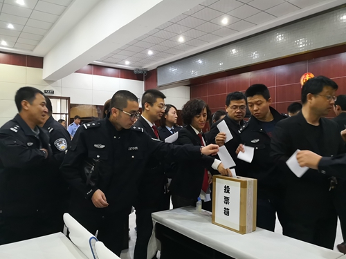 与会干警们充分发扬了民主精神,采取不记名投票的方式,推选了5名政治素质高、道德品行好、业务能力强、廉洁自律、作风优良的候选人。