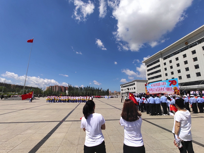 70年,峥嵘岁月弹指一挥间;70年,中华大地旧貌换新颜。此次活动包括升旗仪式、为林口县先优模范代表佩戴国旗徽章、千人共唱《我和我的祖国》和300名少年儿童摆70造型等环节。