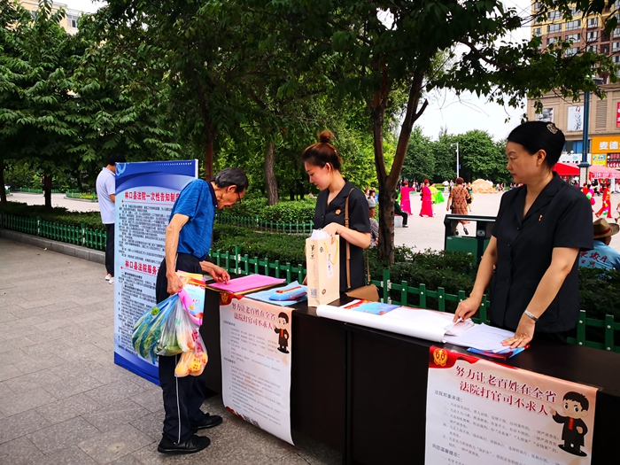 为践行省法院石时态院长提出的“努力让老百姓在全省法院打官司不求人”的庄严承诺,贯彻落实市中院推进“打官司不求人”工作会议精神,近日,林口县法院组织干警到人口密集的兴林广场开展“让老百姓打官司不求人”主题普法宣传活动。