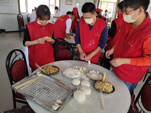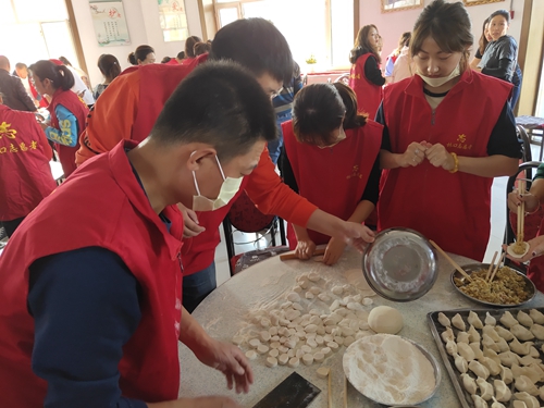 5名党员志愿者跟随志愿者服务队来到了龙爪镇社会福利服务中心,为福利中心的老人送去了日用品,帮助老人打扫房间卫生,同时跟老人们一起包饺子。大家系好围裙,挽起袖子,擀皮、洗菜、切菜、拌馅,很快投入到了“战斗”,活动室里笑声不断,志愿者与老人们一起包饺子、拉家常。大家分工协作,有条不紊地包着饺子,配合默契,忙得不亦乐乎。