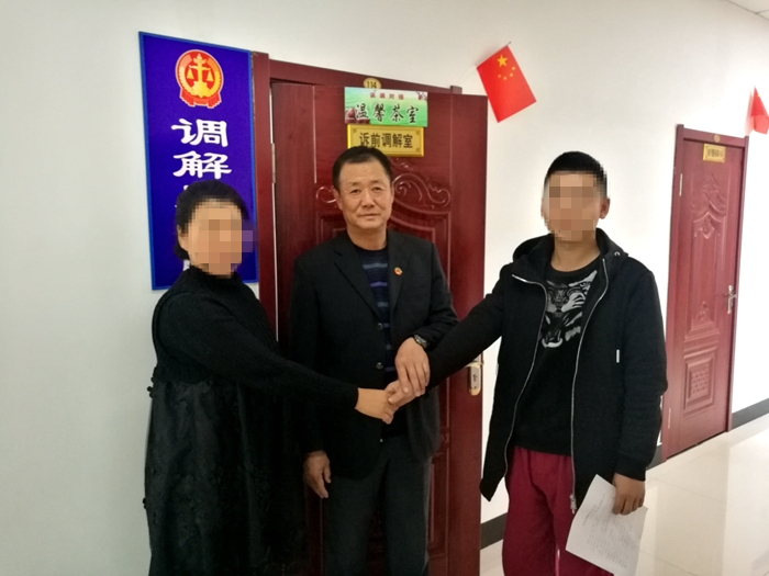 林口县法院诉讼服务中心工作人员考虑双方系家事纠纷,又为母子关系,本着化解矛盾、融和亲情的工作理念,将案件委派给该院诉前调解“温馨茶室”,调解室工作人员在调解工作中,相继通过电话沟通、视频对话、面对面调解等方式方法,最终,促成了母子双方握手言好,同时,又达成了补偿款领取协议,母子双方的矛盾纠纷得以圆满化解,一个家庭成员间的亲情得以融和再续。