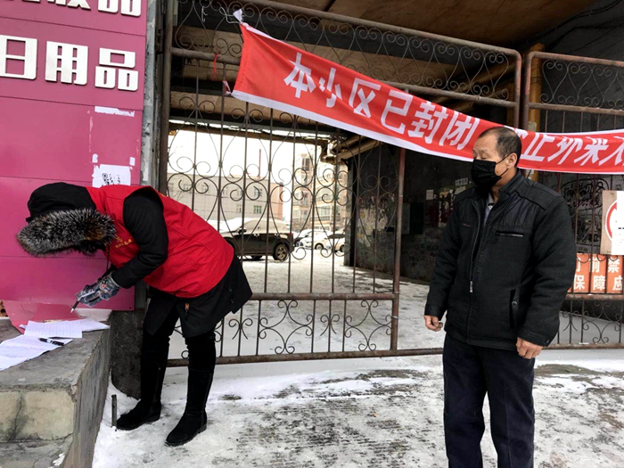 该院值班干警在包保小区门前,有条不紊的进行着出入人员登记、车辆登记等工作。同时,他们还不忘提醒出入居民和司机小心积雪路滑,安全出行,这使居民们在风雪中倍感温暖。在出入登记的过程中,他们也会遇到不理解、不支持,甚至不配合,但他们深知自己肩上的责任,牢记自己最初的使命,总能做到耐心劝导,心平气和的完成必须的工作程序。他们就这样默默地坚守着,在风雪中战“疫”。