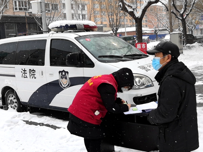 立案接待员唐玉生。作为一名立案战线工作的“老兵”,他自己的工作理念是“问题不过夜”、“遇事立马办”,疫情发生后,庭室领导曾经劝其可以在家分散办公,也同时多照顾一下他年迈且又患病卧床的母亲,但他坚持说自己能克服困难,不给同志们增加工作量,不搞特殊化,怀着对母亲的愧疚,依然在工作岗位上坚守,并与其他同志一样排班轮岗,定期到小区进行防控值班,风雪无阻。