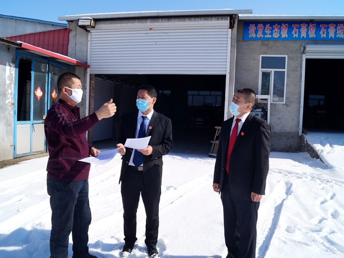 3月5日,根据院党组工作安排,开展了线下法官送法进企业活动,该院党组成员、常务副院长侯立卿、立案庭庭长陈卫仕一行走访了龙江银行牡丹江分行林口支行、龙海木业等企业,向企业发放了《风险告知书》,询问了当前复工复产存在的困难,并就企业生产经营中可能出现的风险进行了提醒。
