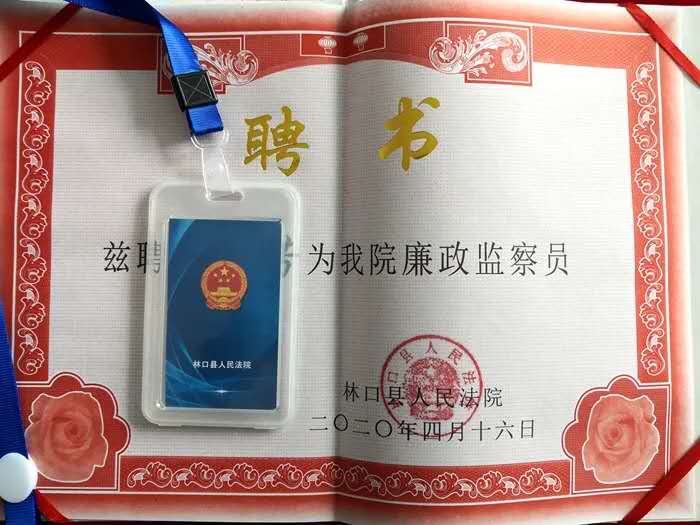 会上,党组成员、政工科科长刘晶宣读了《中共林口县人民法院党组关于重新选聘廉政监察员的通知》,并向各位廉政监察员颁发了聘任证书和工作证。