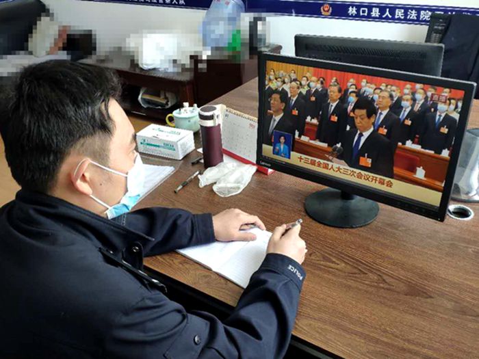 5月22日上午,十三届全国人大三次会议开幕,受疫情影响,中共林口县法院党总支组织各支部党员自主收看会议实况。