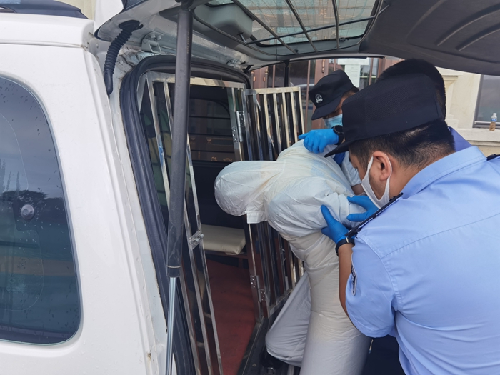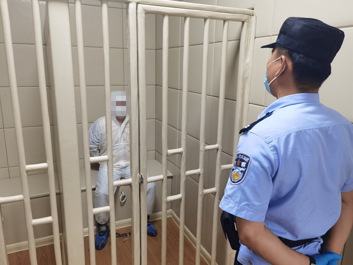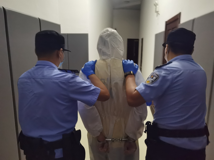 疫情防控期间,该院法警大队为犯罪嫌疑人准备了防护服、防护手套、口罩、鞋套等防护用品,为了确保犯罪嫌疑人与外界“零”接触,该大队在看守所办理提押手续时,将防护用品交给看守所工作人员,由看守所工作人员统一穿戴后再进行提押交接工作。