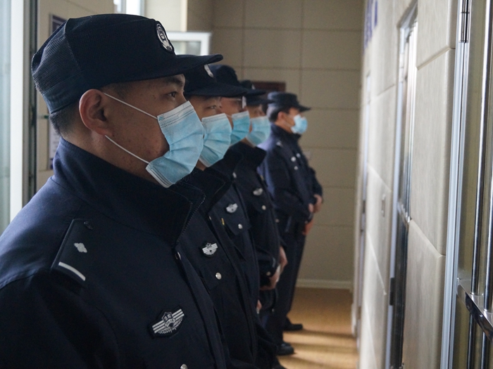 庭审结束后,11名被告人被有序还押看守所。 在此次庭审过程中,全体法警始终保持高度警惕,严格按庭审规范履行职责,提高了重大复杂案件的安全保障工作能力,通过实战对日常规范化训练进行了有效检验,展现了司法警察过硬的技能素质和良好的精神风貌。