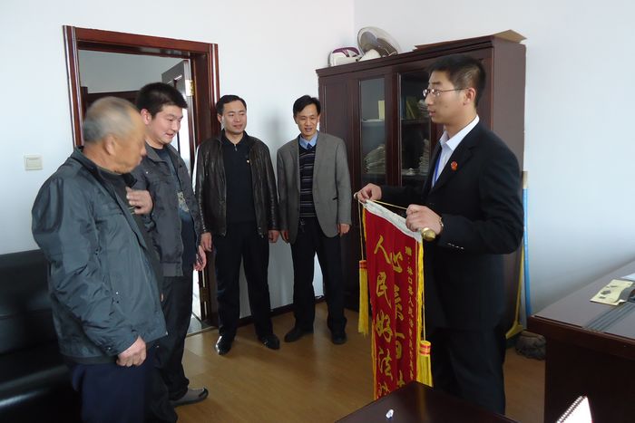 近日,林口县龙爪镇园艺村村民郭增生在林口西街派出所两名民警的陪同下,来到了林口法院,将一面绣有“心系百姓心,人民好法官”的锦旗送到了执行局法官高大鹏的手中,当事人郭增生激动地不住的念叨“真是个好法官呀!人民的好干部….”