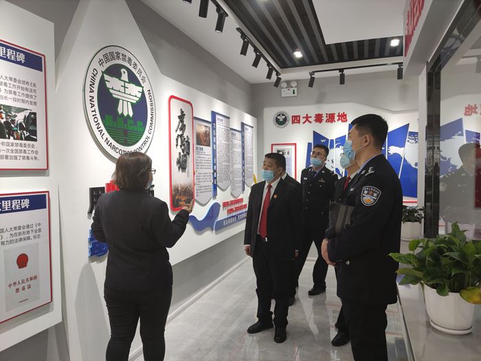 在禁毒警示教育基地,讲解员详细讲解了展厅内的伟人题词篇、禁毒历史篇、毒品知识篇、毒品危害篇等。通过参观各种毒品仿真样品以及吸食工具,使每位干警深刻了解毒品给人类和社会带来的严重危害,提升自觉拒毒、防毒、识毒意识。