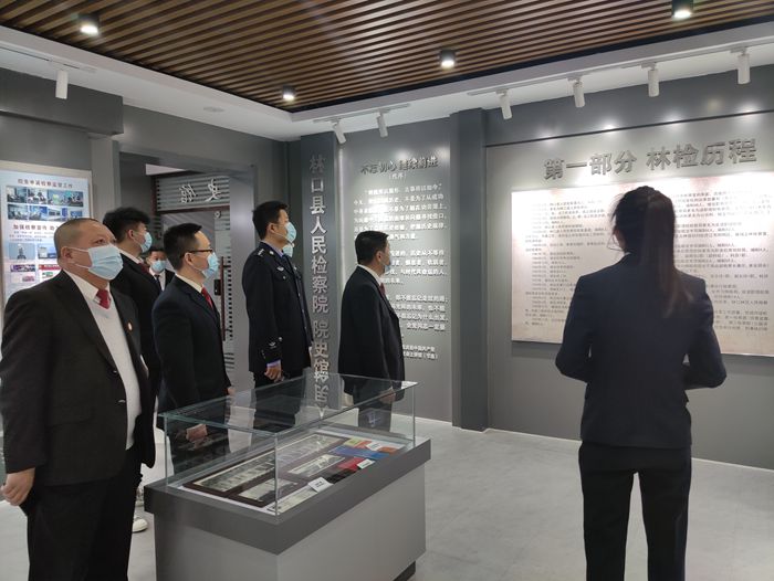 在检察院院史馆,随着讲解员的步伐,大家了解了林口县人民检察院的历任领导、机构沿革以及检察制服和办公楼的变迁,了解了林口检察事业的发端、创建、探索阶段以及重建与发展阶段,感受了林口检察机关励精图治,不懈奋进,由小到大,由弱到强,由单一到全面的发展历程,也让法院干警们感受到了检察院干警拼搏奋斗的精神。