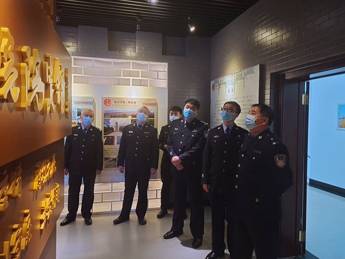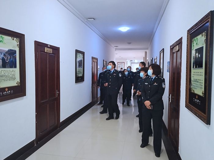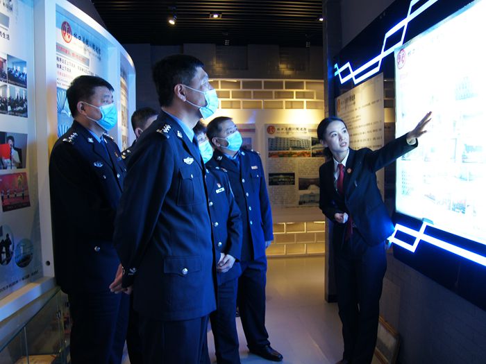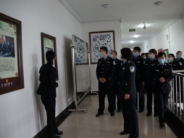 在文化长廊,讲解员带大家了解了法院干警的日常工作,通过一张张照片,一个个画面,让公安干警感同身受。