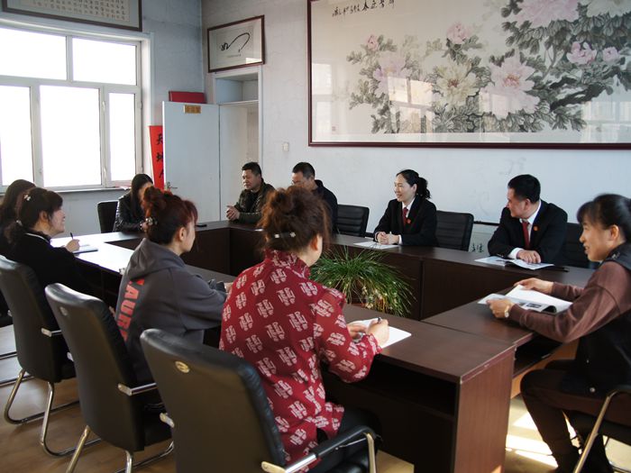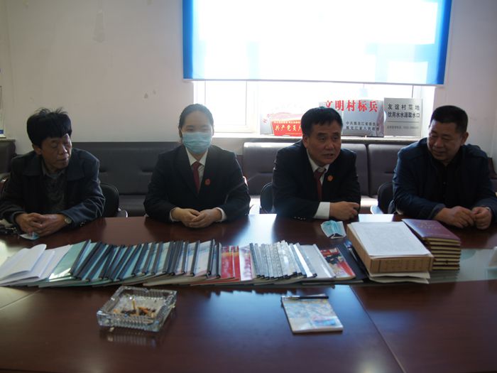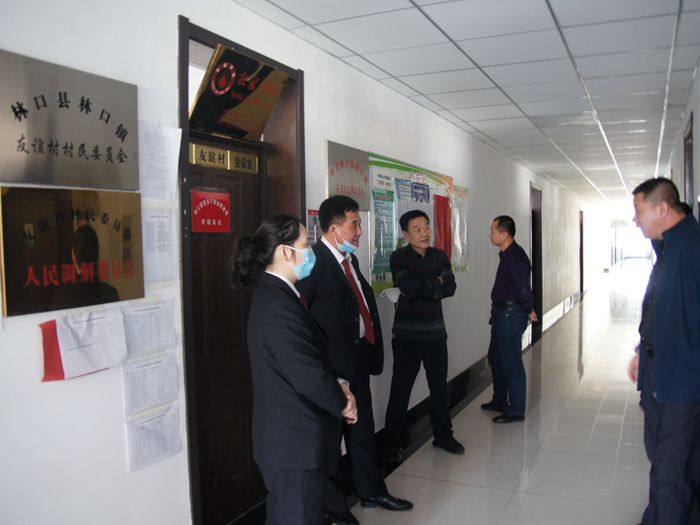 在林口镇友谊村村委会,副院长李清武、副院长刘芳与村委会干部进行了座谈,向村干部问策、学习、求教,倾听了他们的呼声期盼,并根据他们的实际需求,对相关法律条文进行了解释说明,切实增强村干部的法律意识,为新农村建设提供了法律保障。
