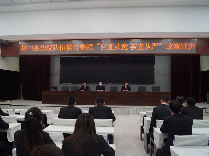 为深入贯彻落实罗海涛书记到院调研指导队伍教育整顿工作相关要求,4月9日上午,林口县法院组织召开“自查从宽、被查从严”政策宣讲会。会议由党组成员、副院长侯立卿主持,院领导及全体干警参加会议。