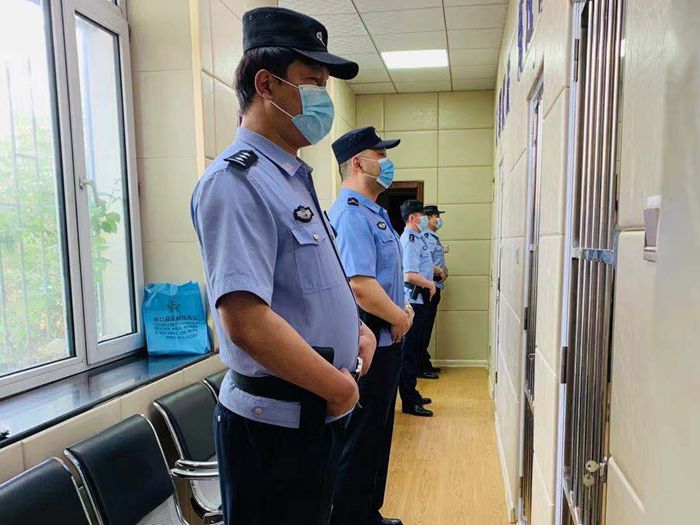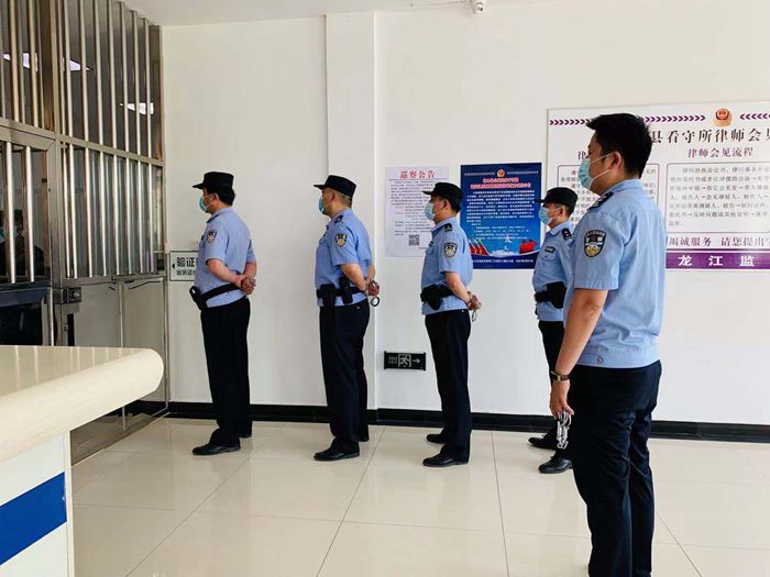 开庭前一天,法警队召开庭前准备会议,讨论研究押解方案,明确分工和任务,充分考虑了各方面的因素,并制定了应对紧急情况的预案。19日8时30分,警队全员按照预定的方案,出动9名法警前往林口县看守所办理提押手续,在8时50分之前准时将4名被告人押解到林口法院押解室待审。由值班法警对11名取保候审人员逐一登记并安检,同时安排两名法警维护庭审秩序,防止一切妨碍庭审秩序的事情发生。