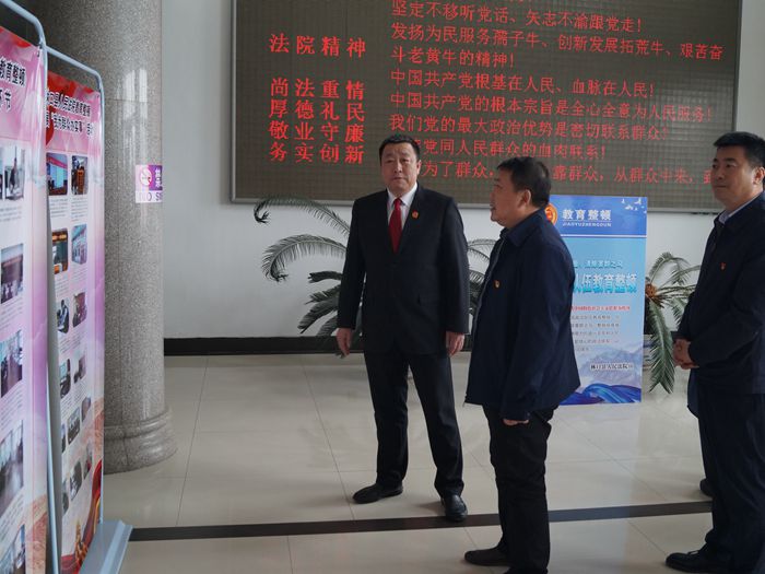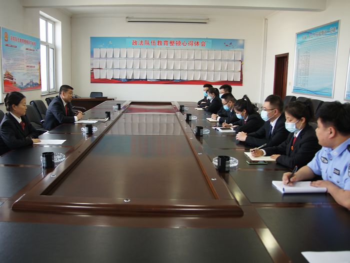 6月1日,省政法队伍教育整顿第三指导组副组长王家男带队一行7人来到林口县法院对队伍教育整顿进行指导检查。县委常委、政法委书记冯海冬、政法委副书记仲崇波陪同检查。