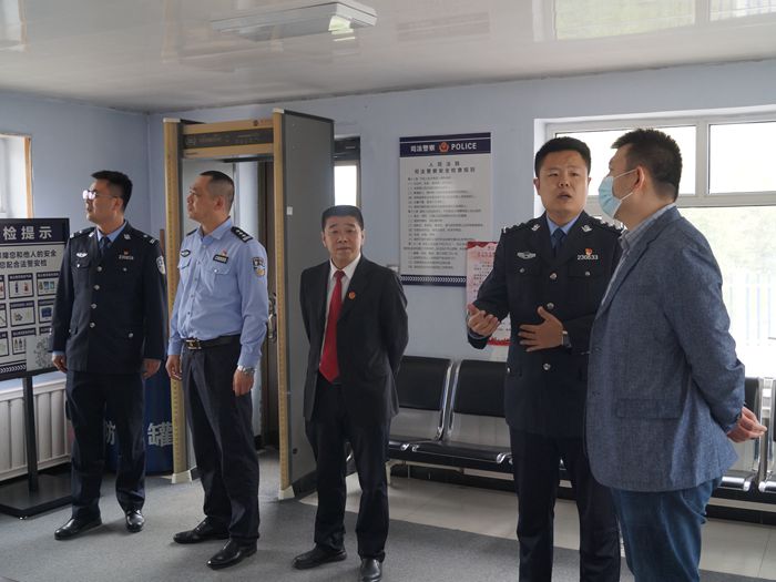 6月1日上午,省高级人民法院法警总队副总队长那峰、警务室主任高磊一行3人,对我院“六专四室”达标建设工作进行考核验收。市中院法警支队支队长张鸿、林口县法院党组成员、副院长侯立卿陪同验收。