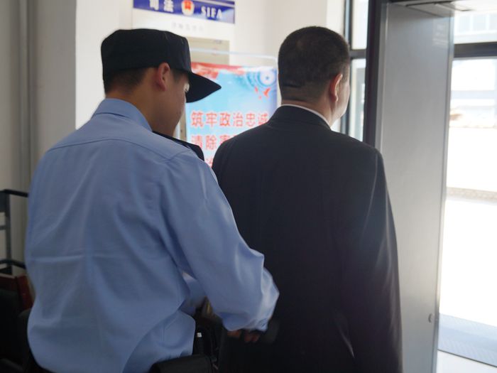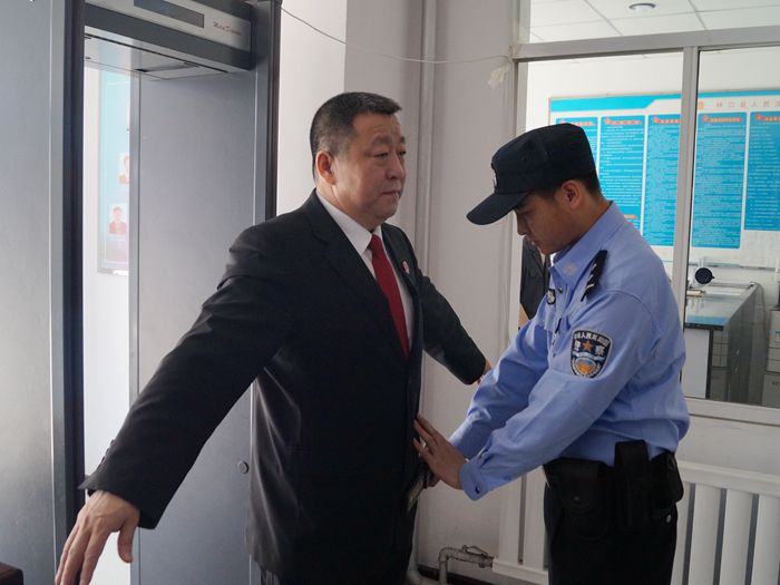 孙凯院长首先经过安检大厅,以普通办事群众的身份模拟安检程序。孙凯院长指出,安全检查是进入法院的“第一道关卡”,值班法警每一次安检都要严格按照路程进行,确保来访群众及干警的人身安全。
