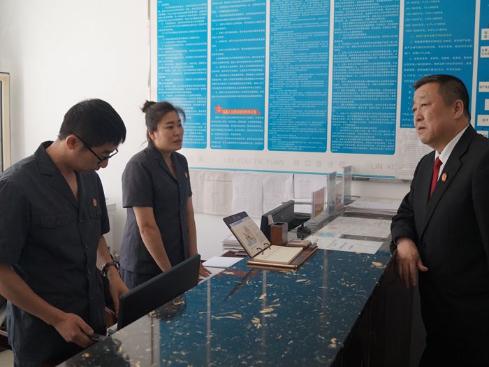 为进一步推进队伍教育整顿,优化为民办事流程,切实打通服务群众“最后一公里”,6月8日,林口县人民法院开展“一把手走流程”活动,党组书记、院长孙凯来到刁翎法庭,通过流程体验详细了解办事程序、政策解答、实地查看干警为民办事等方面的工作情况。