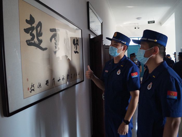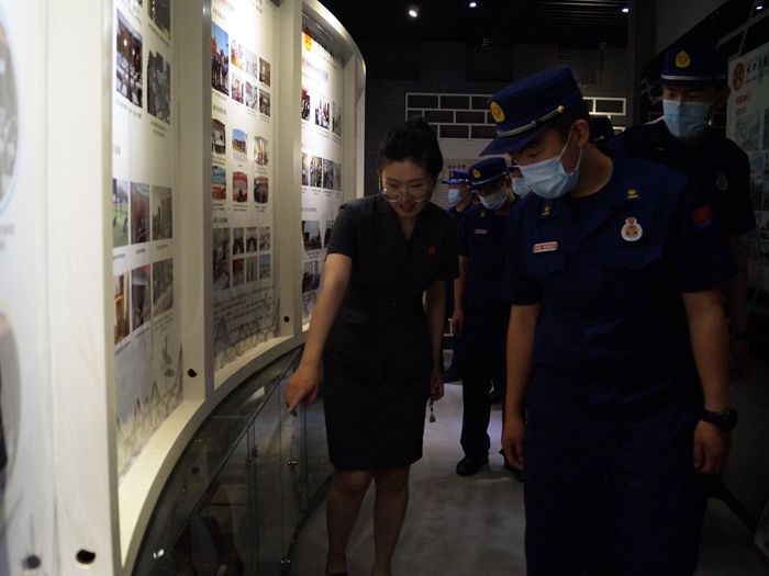 在文化长廊,讲解员带大家了解了法院干警的日常工作,通过一张张照片、一个个画面,让战士们感受到法院工作的严谨与庄重。