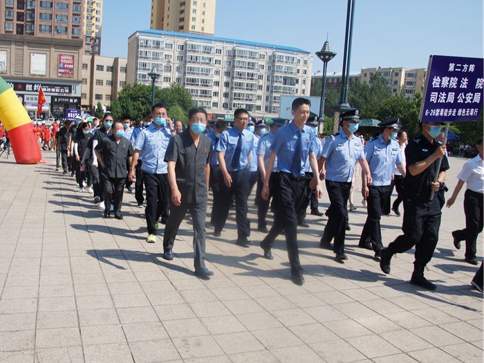 活动主会场设在兴林广场,干警队伍从兴林广场出发,沿文政大街西行至新华路,终点南山广场。林口法院干警克服天气炎热,有序、认真的走完全程,确保良好宣传效果。