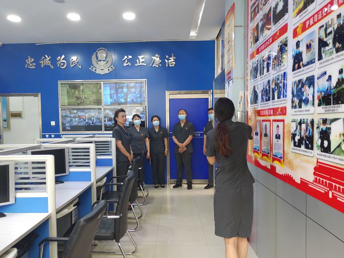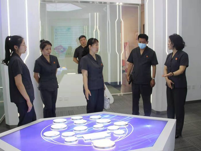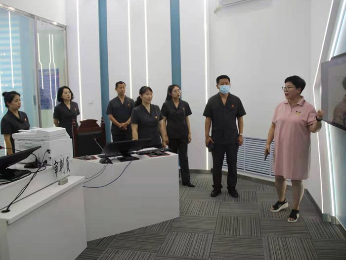 在爱民区法院,实地参观了诉讼服务中心、家事法庭、科技法庭等场所。座谈会上,爱民区法院党组书记、院长李刚及部分党组成员分享了立案诉讼服务、质效提升、队伍建设等先进工作经验,并针对诉讼服务中心工作运行的具体细节和难点开展了学习讨论,以便更好的寻找差距。