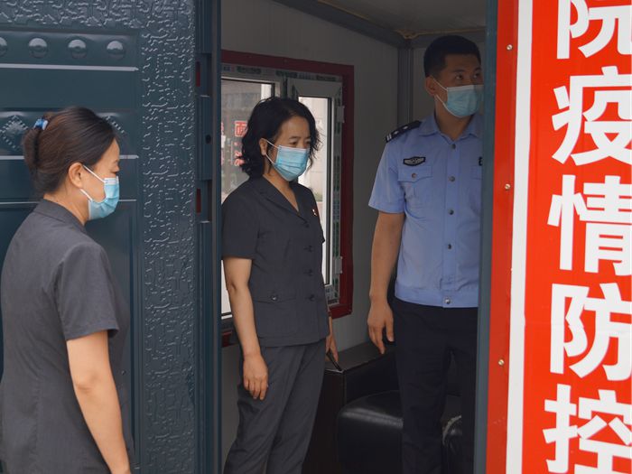 在楠山嘉园小区和法院家属楼,院长候选人杜蕴青详细查看了卡点设置和值班环境,了解了小区人群分布和以往干警值守防控点的相关情况。