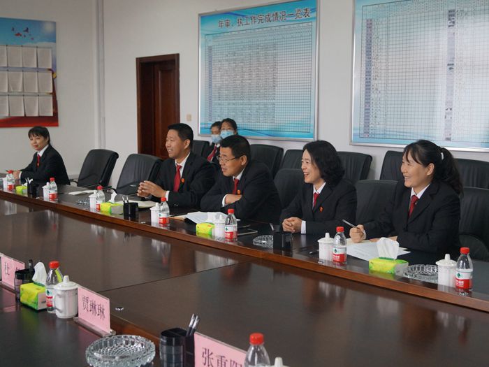 10月14日上午,市中级人民法院民事审判一庭庭长杜敏、民事审判二庭庭长姜山、民事审判三庭庭长李仲斌一行6人莅临林口法院进行调研指导。党组书记、代院长杜蕴青、党组成员、副院长刘芳及民事审判庭庭长李生、诉讼服务中心主任陈卫仕、审判管理办公室主任李佳参加座谈。
