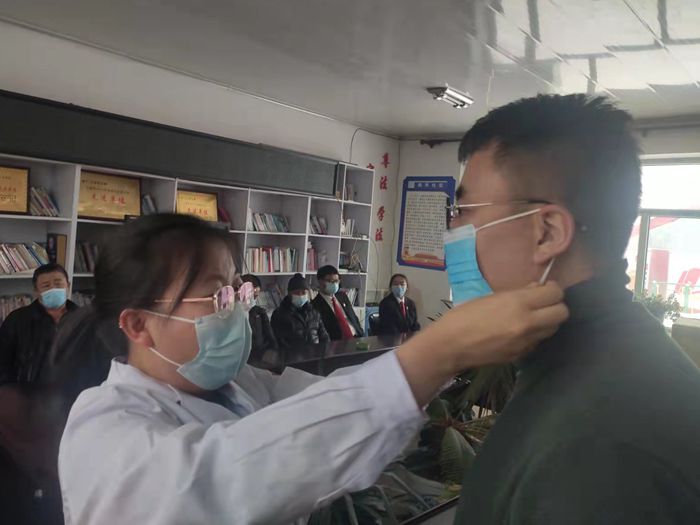 11月30日,林口县法院执行党支部邀请医护人员一同前往古城镇三村开展“入村入户规范佩戴口罩”活动。医护人员在现场为大家演示如何正确佩戴口罩,接着为群众纠正日常佩戴时容易出现的错误,最后支部党员代表为该村捐赠医用口罩一箱。