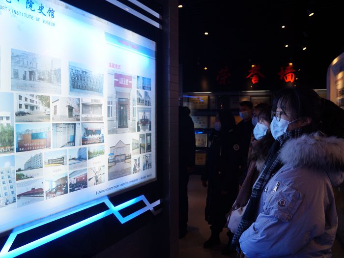 在讲解员的带领下,一行人先后参观了安检大厅、审判庭、羁押室、院史馆等场所,通过参观和聆听讲解员的介绍,进一步了解了法院各部门的职能和信息化建设。